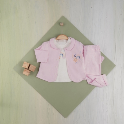 çiçek Nakışlı üçlü Penye Kız Takım 3-6-9 Ay