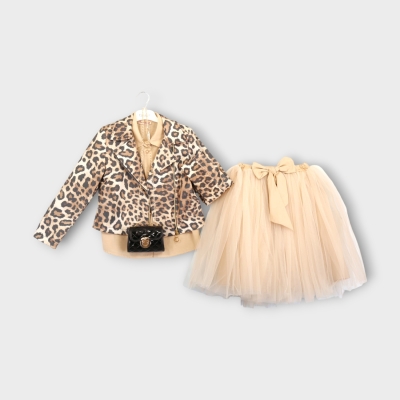 Deri çantalı Leopar Ceketli Tüllü Elbise 10-13 Y.