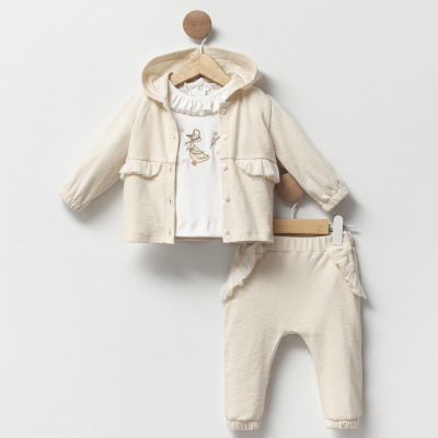 Kapşonlu Hırkalı üçlü Kız Takım 6-9-12 Ay
