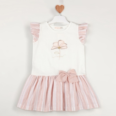 Papatya Nakışlı Çizgili Elbise 1-4 Y.