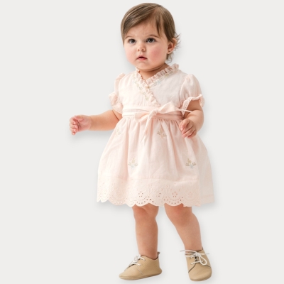 Çiçek Nakışlı Brode Nakışlı Elbise 9-24 Ay