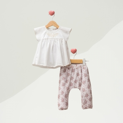 Robası çiçekli Tunik, Pantolonlu Kız Takım 6-9-12-18 Ay